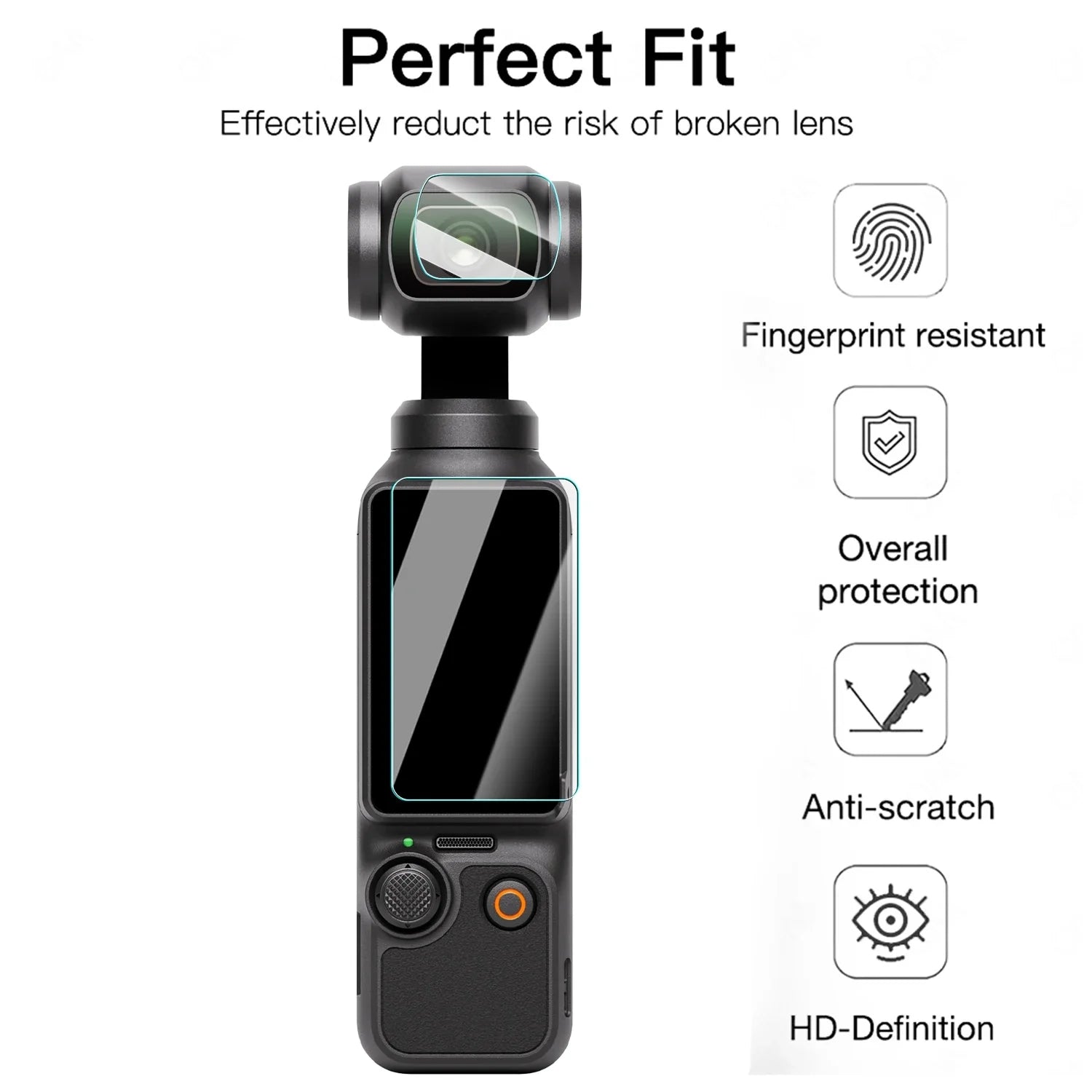 - Tailored Precision: Specifically designed screen and lens tempered glass protectors for DJI Pocket 3 camera. Experience comprehensive protection for your prized gadget!